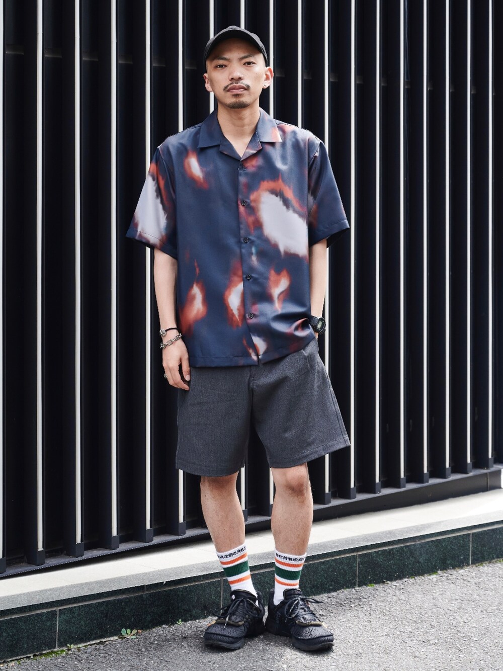 インパクトある柄が特徴のシャツ。 一枚でこの夏の主役に。 アウトラストシリーズのショーツは間違いないです。