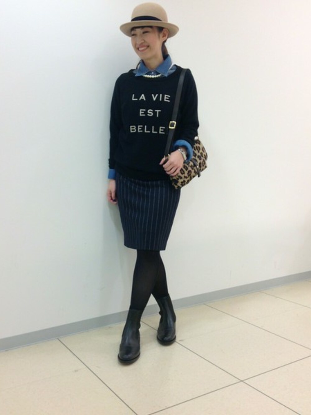 トレンドのロゴスウェットとタイトスカートのコーデ♡ こちらのストライプのタイトスカートはle lundiのみの展開となります♪