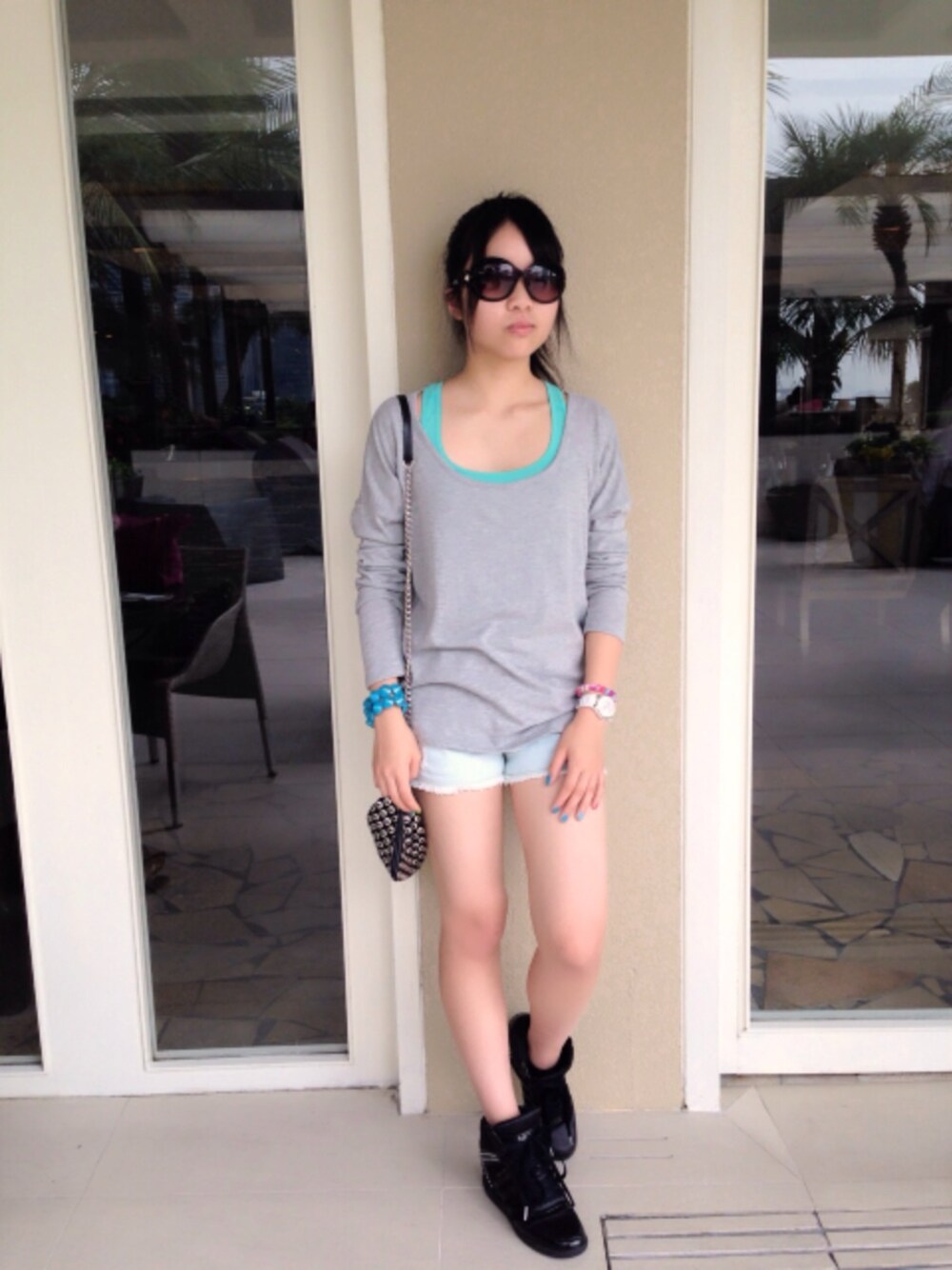 シンプルコーデ トップス…ブランド不明 バック…ZARA ボトムス…LOWRYS FARM シューズ…adidas