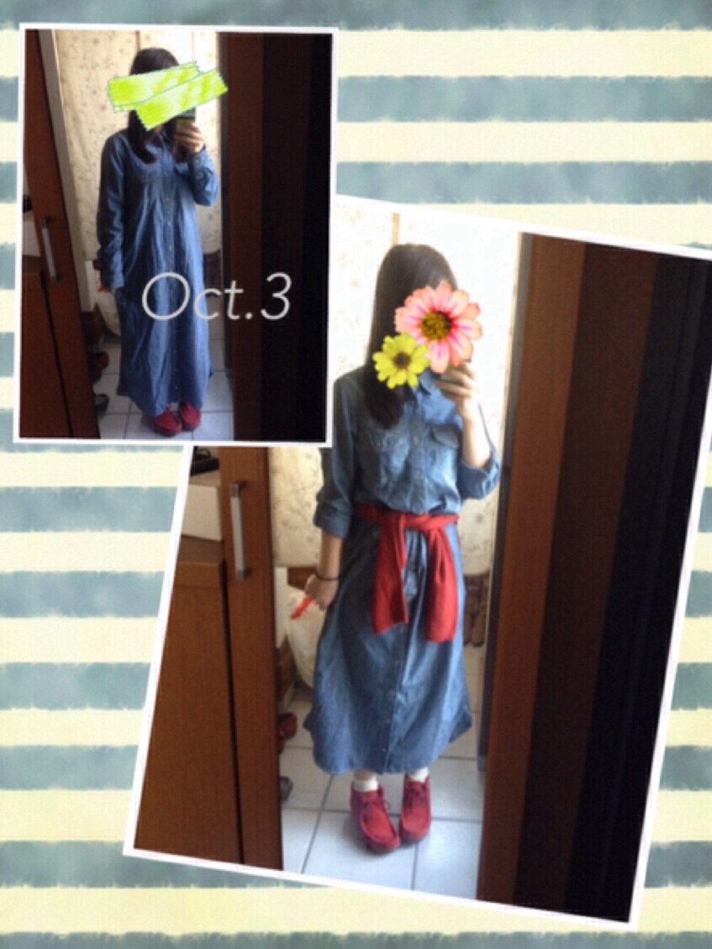今日は仕事お休みで友だちとランチ♡ 背が低いから、マキシ丈のワンピは やっぱり丈も袖も長い… Sサイズなんやけどなー。 袖まくって、カーデ腰に巻いたら なんとかなって良かった(笑) もうちょっと寒くなってきたら 上にセーター着たいなー☻