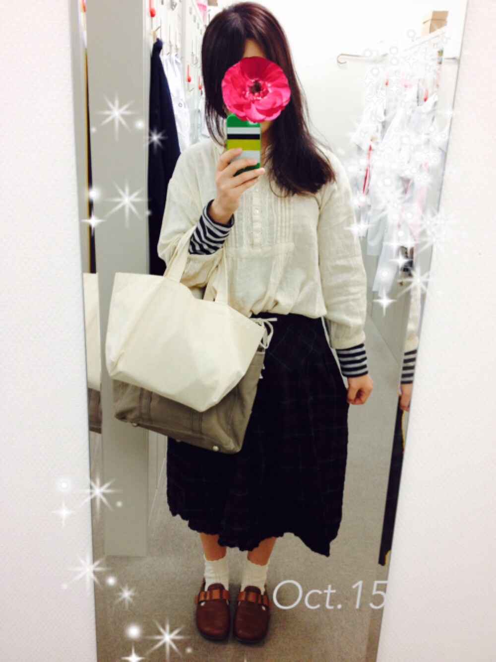 レトロな雰囲気がすき♡♡ スカートはチャコールブラウンで ダークグリーンのチェックが入ってて 可愛いんです◎ 見えにくいですが(*_*)