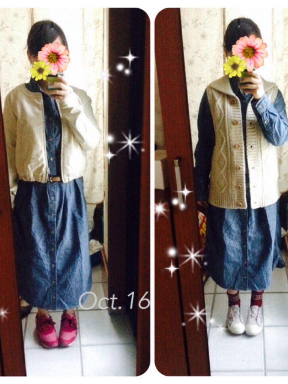 タグがライダースだったので 白のライダース着てみました☻ …が、なんとなく気分じゃなかったので 結局、ベストに変えて 右の格好に落ち着きました(笑)