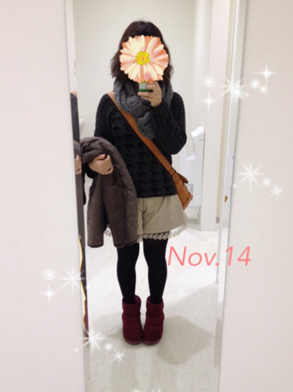 モノトーンコーデ☻ 千鳥柄のニットが可愛くて あったかくてお気に入り◎ サッカー見てたんですが、6-0で快勝! 日本代表かっこよすぎました♡♡ いつか生観戦したい…!