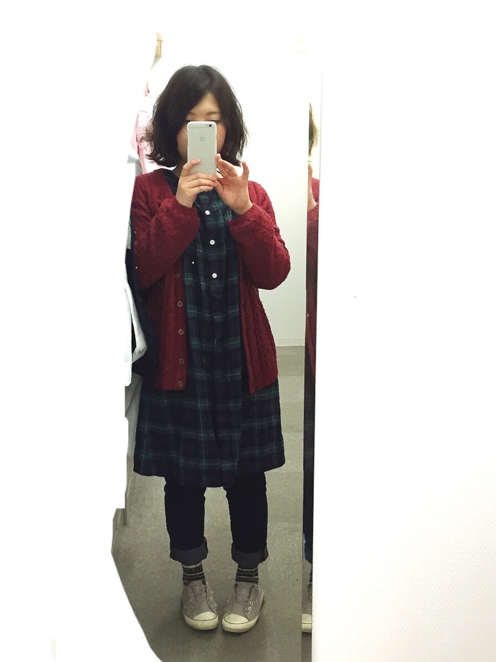 今更クリスマスカラー(笑) チェックワンピ可愛くて もう何年も着てるやつ(◍•ᴗ•◍)