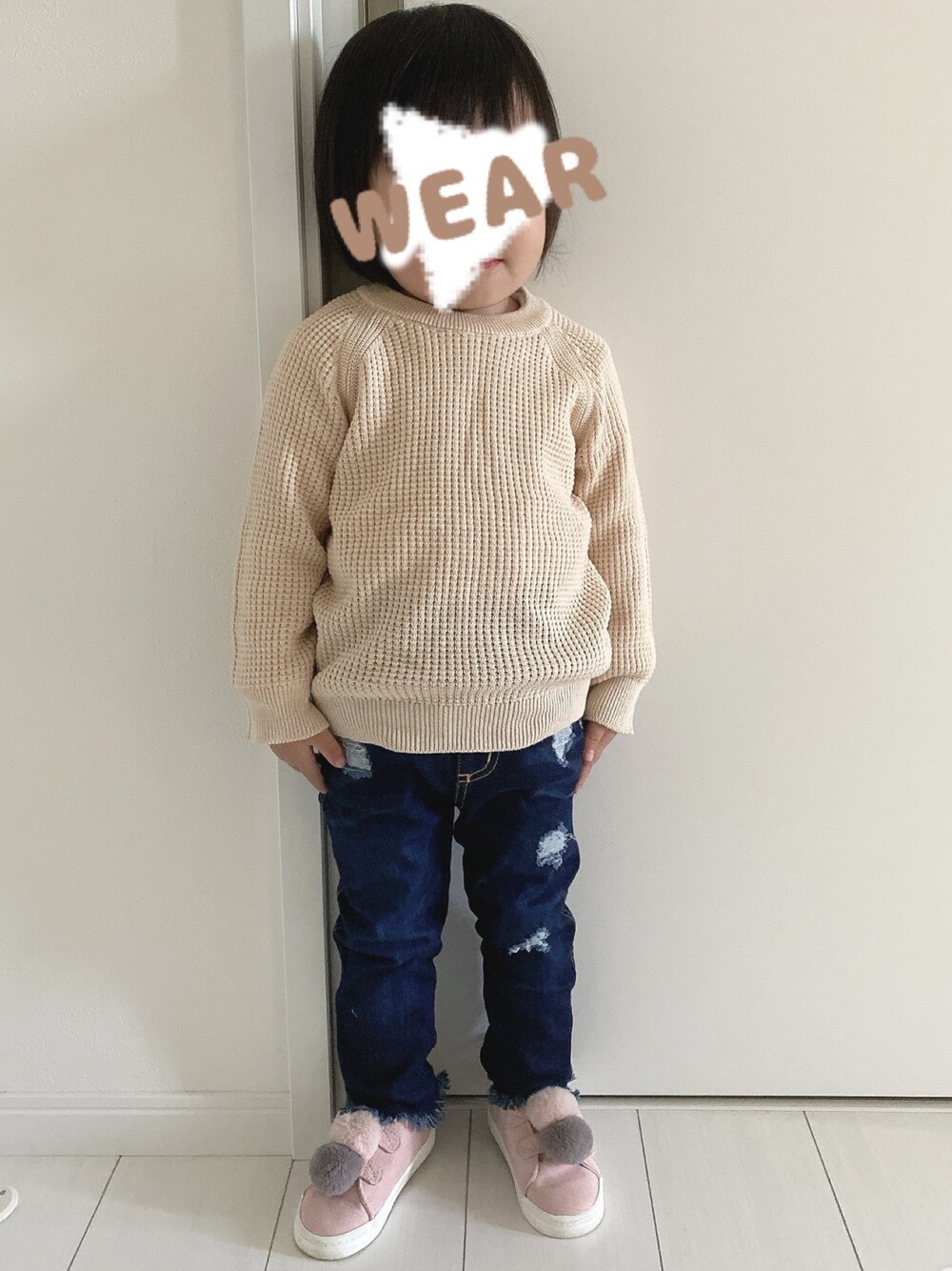 妹ちゃんコーデ ᵕ̈♡︎ 寒かったので 早速ニット🧶✨ 昨年買った " tete a tete " ニットが もう可愛すぎて❤️ そして こちらもやっと穿けたデニム👖✨ 裾はフリンジ加工で 可愛いです💕 娘ちゃんも るんるんでした🎵 ♡︎、お気に入り、ありがとうございます✨