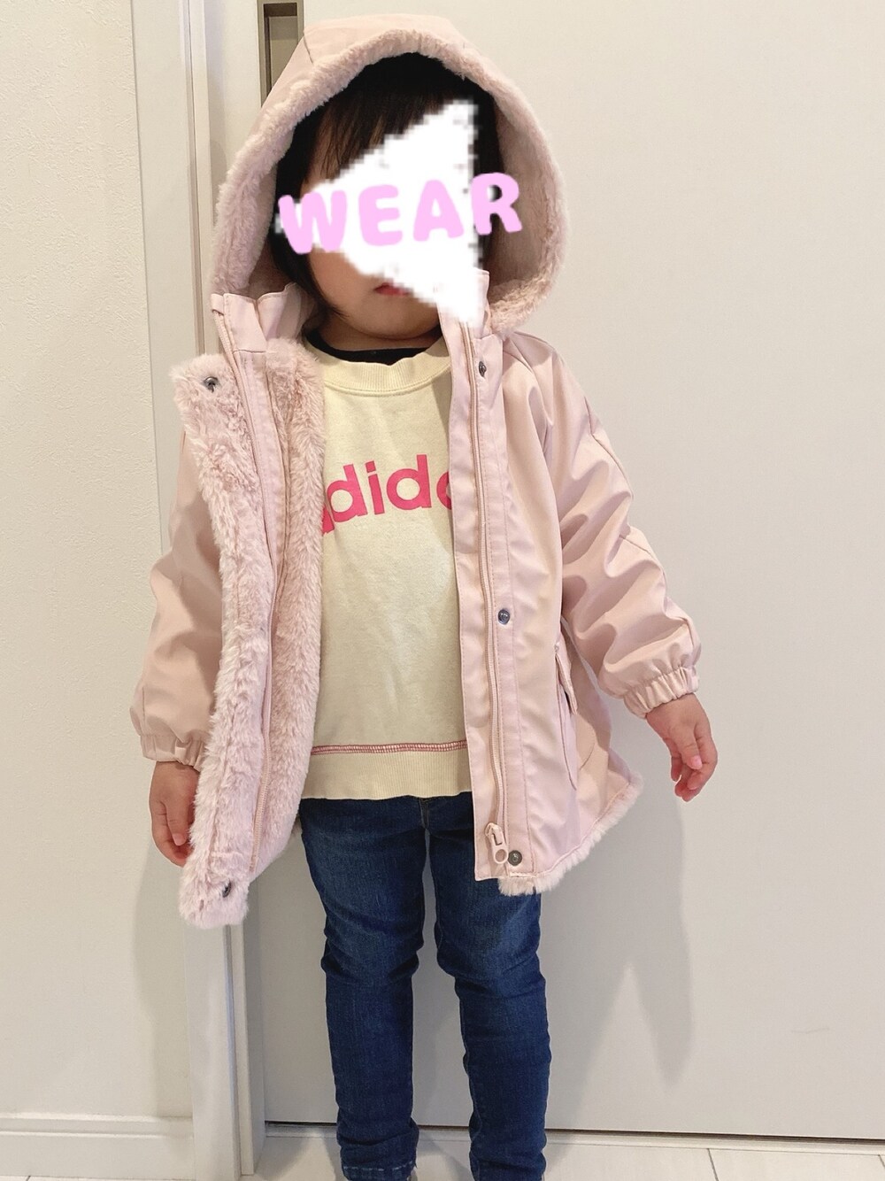 妹ちゃんコーデ ᵕ̈♡︎ 雨風☔️すごすぎて 寒いよーー💦 裏ボアのラバーレインコートさんが サイズアウトしそうだったので…… 慌てて着せました💦 でも着せてみて思ったけど 可愛い❤️ 着せてないアウターが まだまだまだ あるので 早く着せておかないと…… ♡︎、お気に入り、ありがとうございます🎵