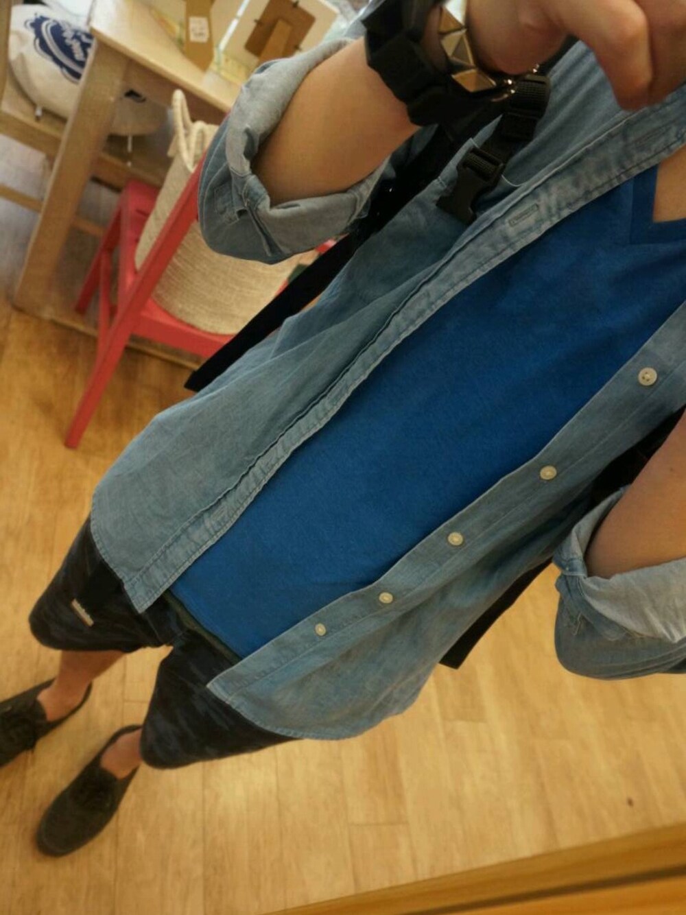 Tシャツ:H&M デニムシャツ:ユニクロ スニーカー:VANS オーセンティック 始めての青コーデ∧( 'Θ' )∧