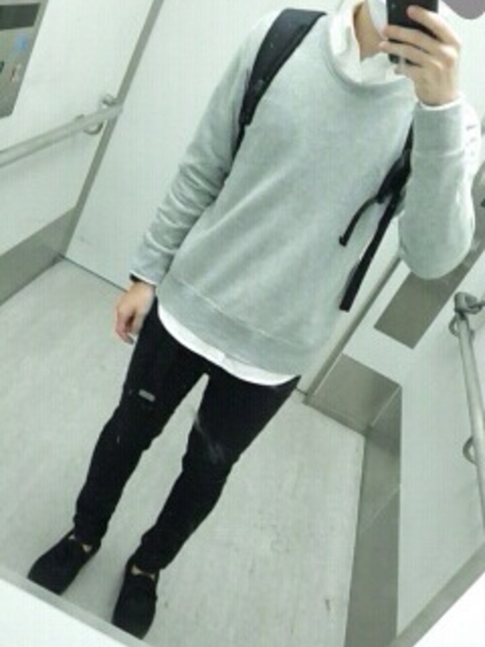 スニーカー:VANS ERA スキニー:UNIQLO オックスフォードシャツ:無印良品 スウェット:無印良品