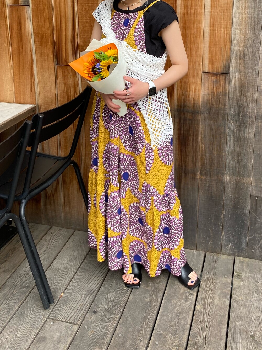 誕生日でもらったお花がワンピースの色とマッチしてて可愛かった〜🌼