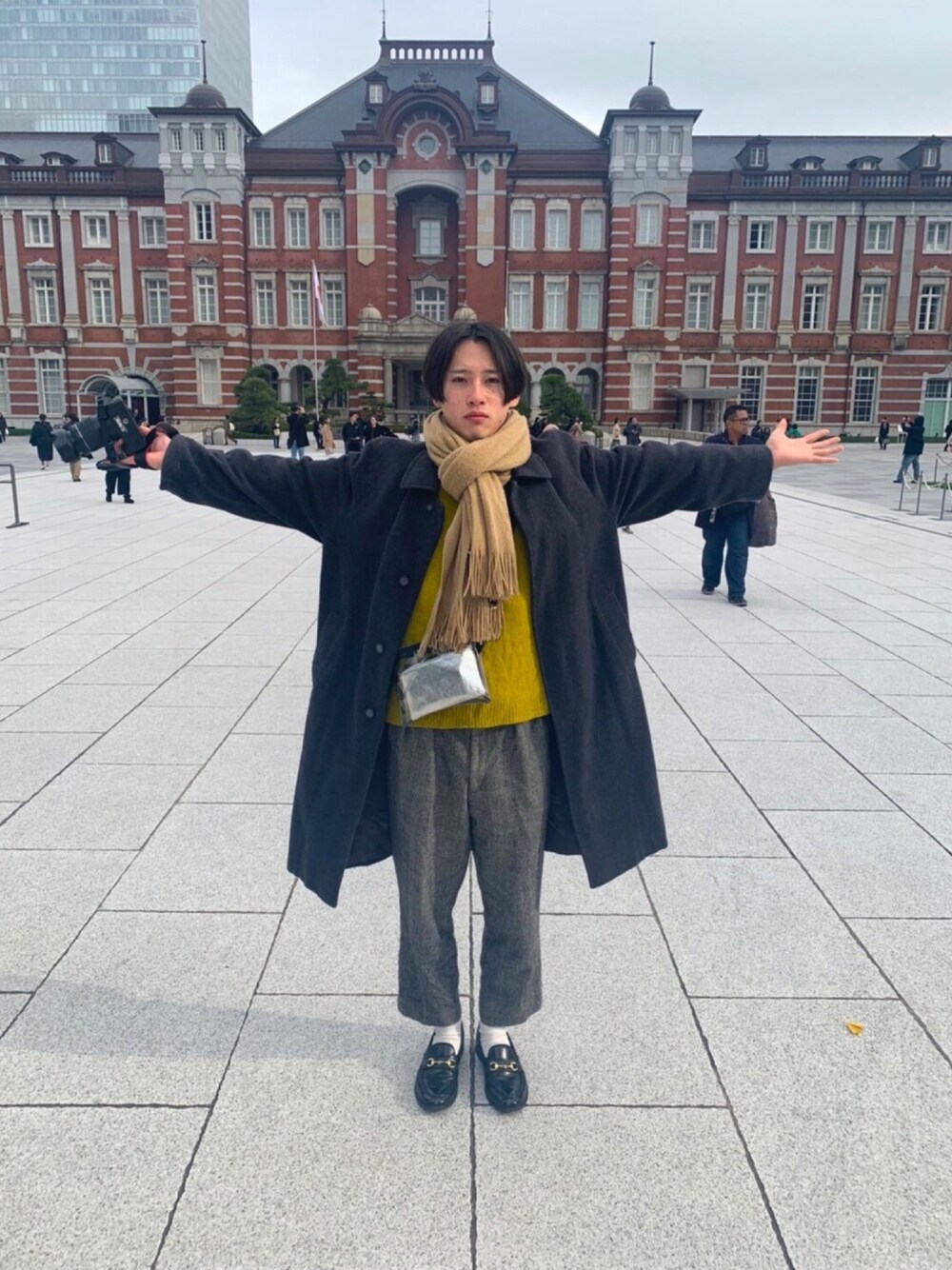 東京駅前で観光客の真似をすることであたかも都会人気取りをしたい田舎人を揶揄する都会人のふりをする田舎人の絵。 これから実家に帰ります🚃 (電車だけじゃ実家に辿り着けないレベルの田舎なので、最寄駅から親に車でpick me upしてもらうよ)