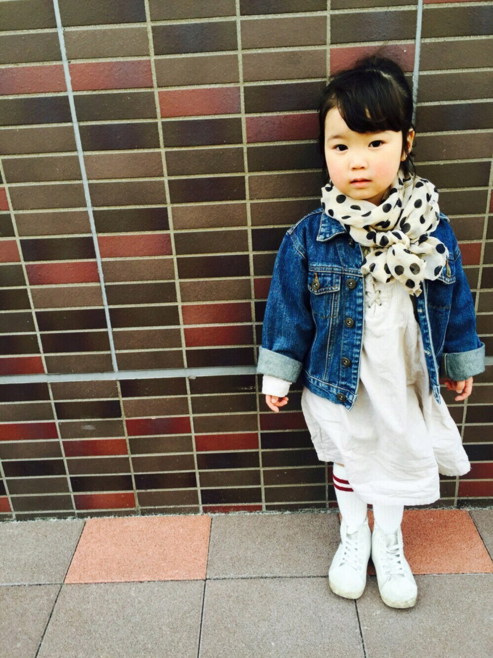 久々の妹ちゃん♪ ちょっと季節外れですか?^_^; 肌寒かった日☆ ドットのスカーフをポイントに◎ 今日も見て下さり、ありがとうございます😌🌸