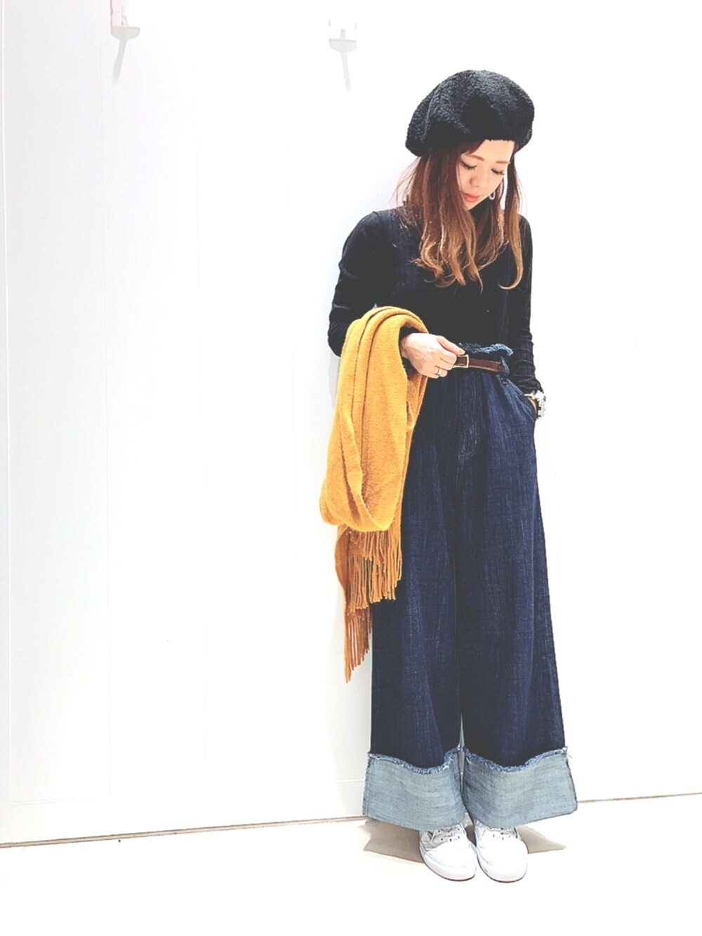 むりやり差し色オレンジ。 折り返しデニム、人気商品です。