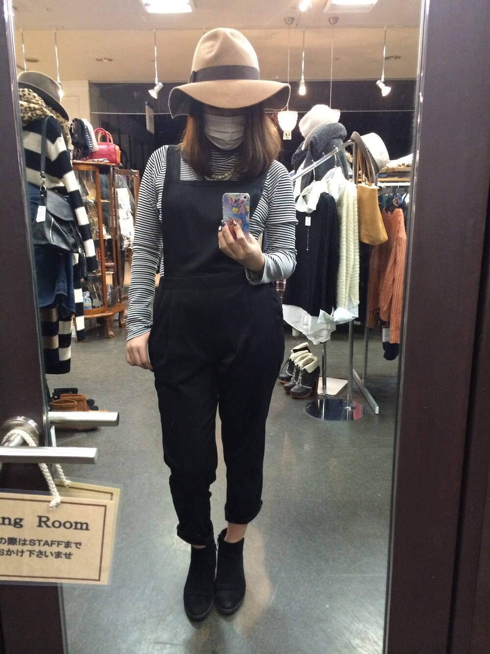 出勤コーデ+女子会コーデ♡ サロペとつば広帽はノーブランド。
