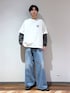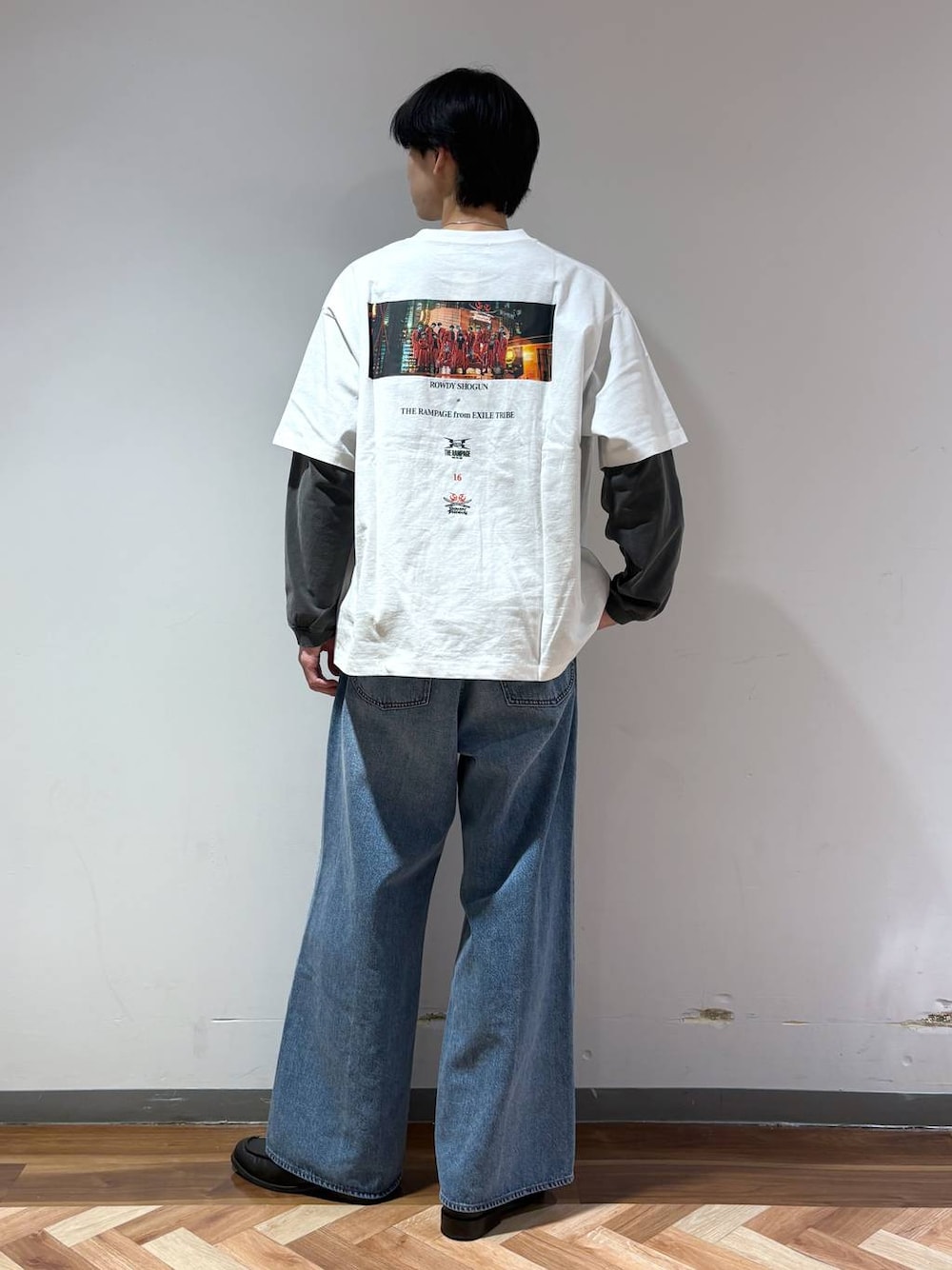 りょーや(RAGEBLUE横浜ビブレ店)のデニムパンツ「12ozデニム/バギーワイドフレアパンツ【セットアップ対応】」を使ったコーディネート