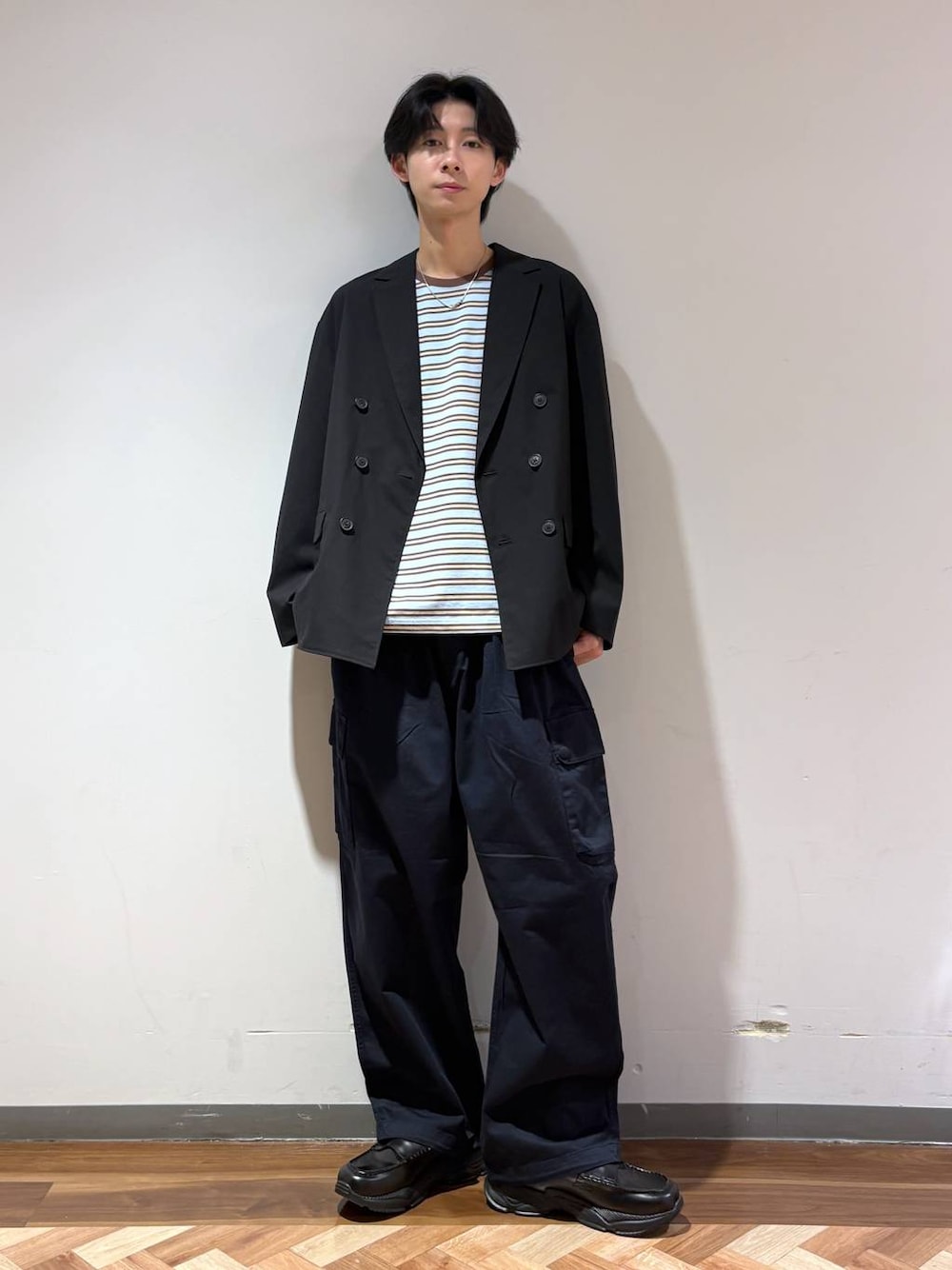 りょーや(RAGEBLUE横浜ビブレ店)のテーラードジャケット「Extra fabric Double Tailored Jacket/ダブルテーラードジャケット【セットアップ対応】」を使ったコーディネート