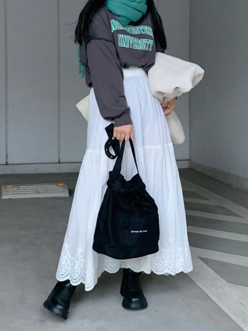 なな(CORNERS)のトートバッグ「ロゴ入りキャンバストートバック」を使ったコーディネート