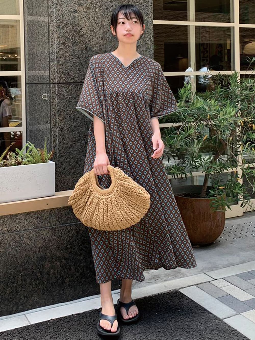 なな(CORNERS)のかごバッグ「ハーフムーンかごバッグ」を使ったコーディネート