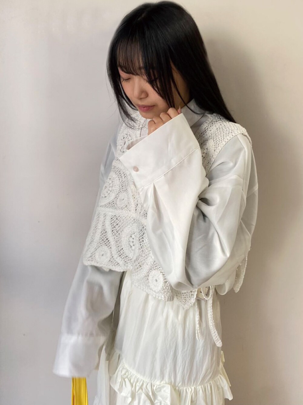 ホワイトコーデ🤍 KRさんコラボシャツにレイヤードしてみたよ✨ バッグもKRさん×yuiさんコラボのやつ Instagram→corners.official nana_corners