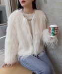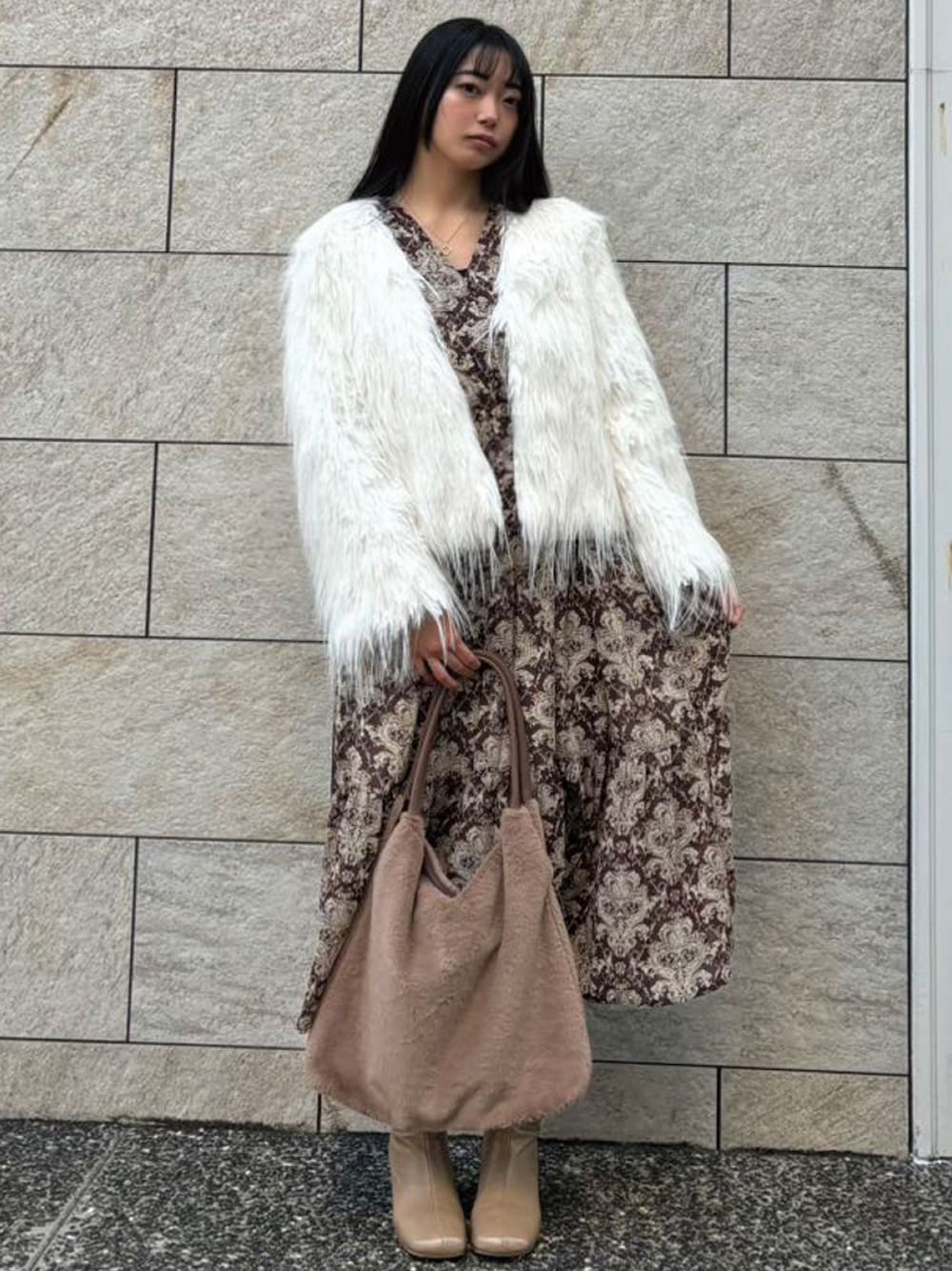 なな(CORNERS)のノーカラーコート「ミドル丈ファーコート」を使ったコーディネート