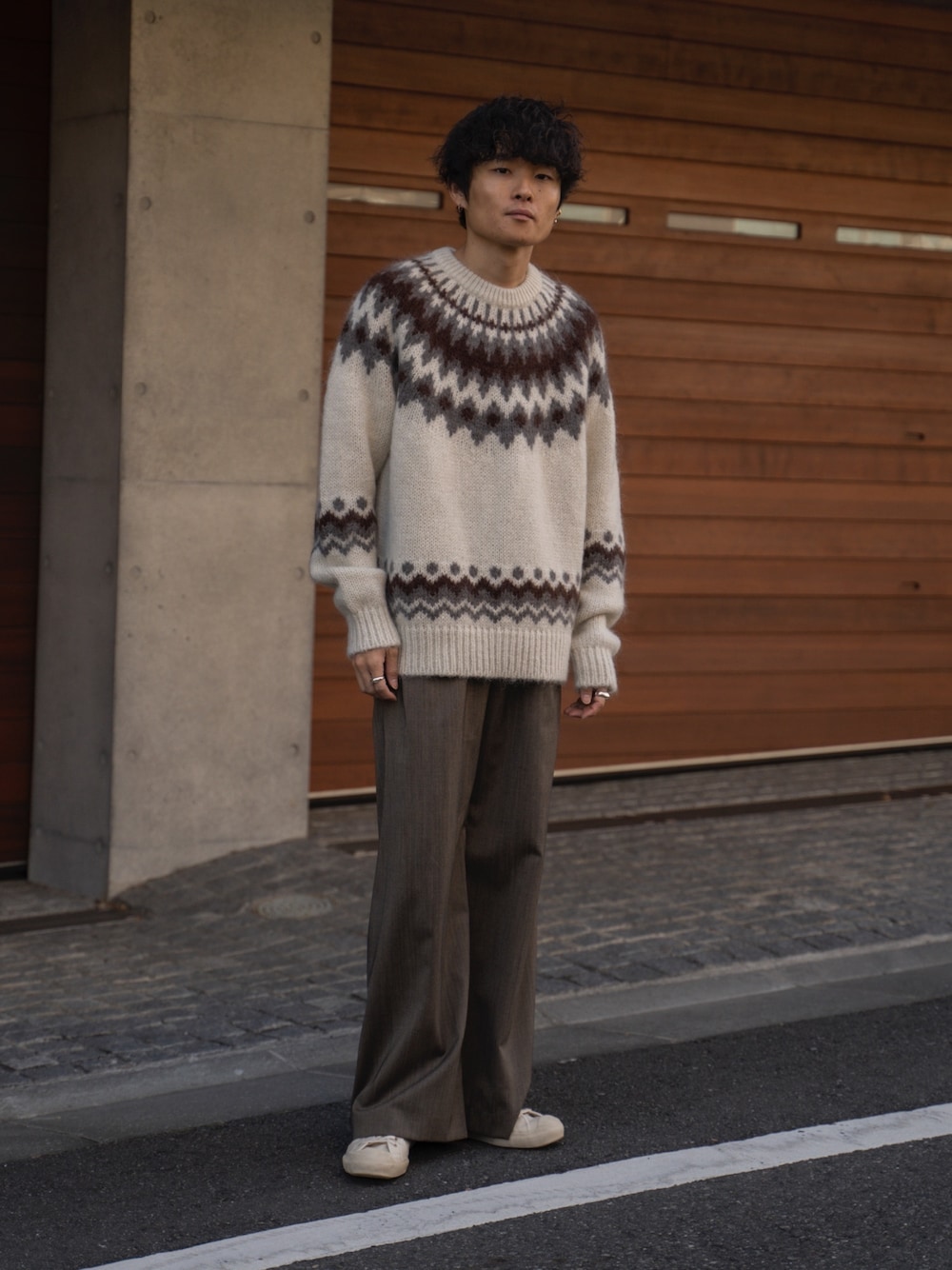 Ryoのニット/セーター「【BATONER/バトナー】MOHAIR NORDIC CREW NECK モヘアノルディッククルーネック #BN-20FM-052」を使ったコーディネート