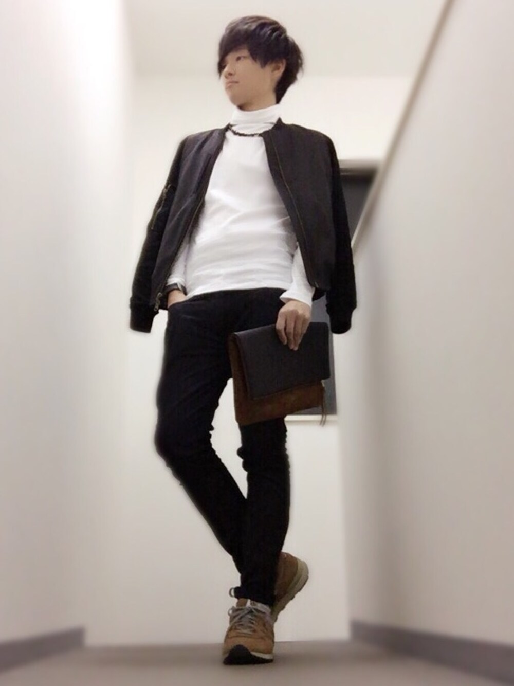 久しぶりのタートルネックコーデ♪ 風が昨日今日強くてすごく寒いですね… 皆さん風邪には気を付け下さい! 今日は、 モノトーンにブラウンをアクセントで入れました〜 シンプルが好きなんです笑 特にこだわりはありませんが… MA-1大好きなんです笑
