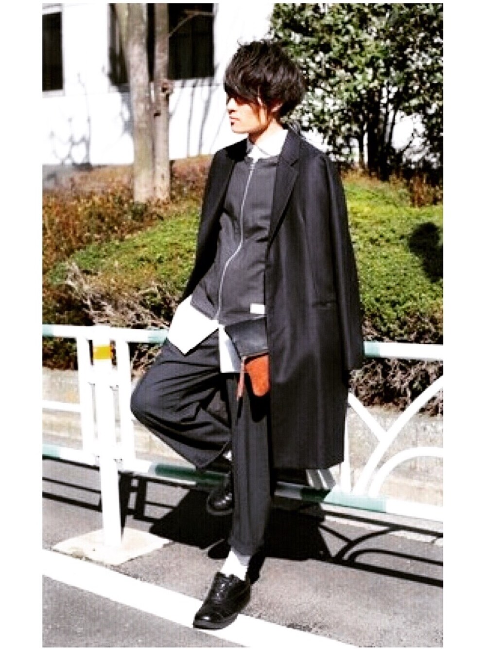 Ryoのライダースジャケット「【Name.】WOOL TROPICAL NO COLLAR RIDER'S」を使ったコーディネート