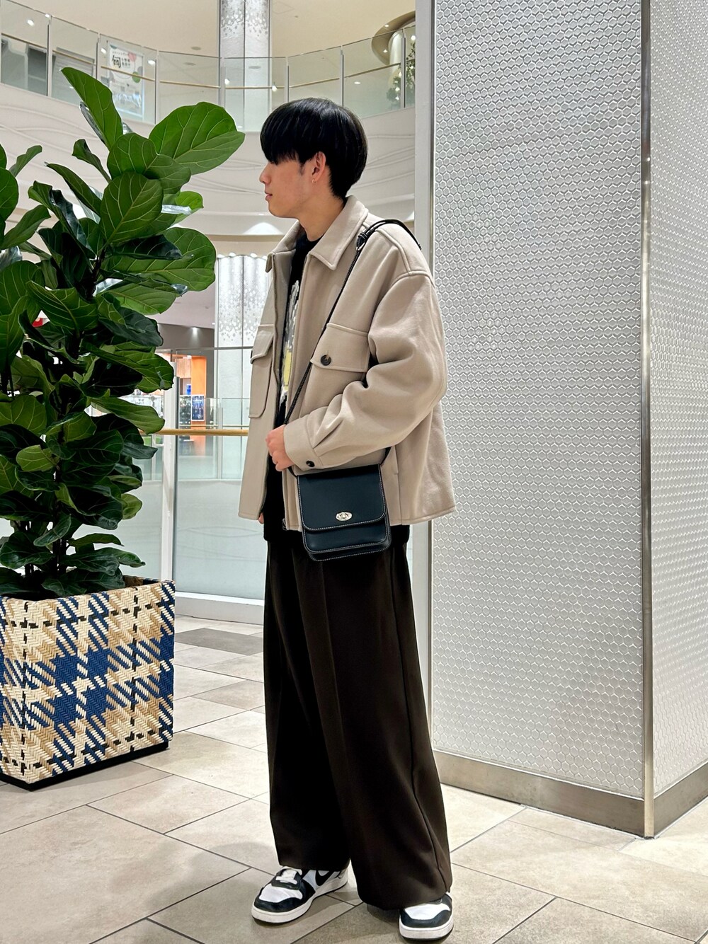 フラワープリントの入ったニットを使用してコーデを組んでみました! 流行りのフラワープリントのニットはこの一着でコーディネートが決まります!シャツなどと合わせると可愛く着ることが出来ます 少しインパクトを抑えたい方は、画像のようにブルゾンを着ることで落ち着いた印象になります CPOブルゾンは、NewZealandWoolを使用しており、冬でもとても暖かいです ドシッとしたハードツイルのワイドパンツは、センタープレスが入ることで、すらっとした印象を与えてくれます
