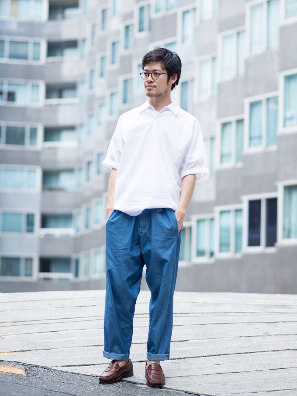 暑いですね! そんな日なので、さわやかに。 ウミットベナンのイージーパンツにブラウンのローファーで軽快に。 トップスはアンルートのオーバーサイズのプルオーバーでゆったりしたコーデ。
