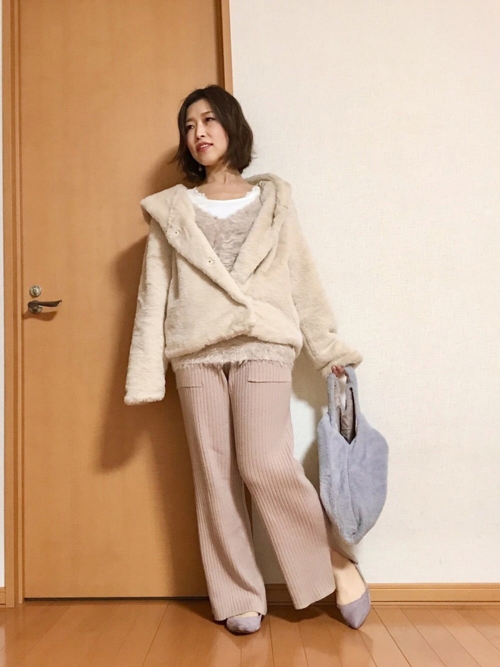 #みんな大好きファーファだよ🧸コーデ 柔軟剤クマさん🧸のファーファみたいになった #消えそうな色コーデ とも言う😆 消えそうな色コーデをやってみたかった😁 このニットとニットパンツならできる〜🎵 え❓消えそうな色って白じゃないの⁉️ ファーファも白だよ⁉️ よく見たらピンクじゃん‼️ …って言われそうですが🤪 フアフアだから許してください😫💦 これで日本一の繁華街を歩いてたら、周りが黒黒黒なんですよ😳まぁ目立つこと🤣 でも、好きなことやってるのは楽しいものです😆 平日はモノトーンとか暗い色着ることが多いから、お休みの日は思いっきりしたいことをする😁そんなコーデが楽しいです🎵 今回は後ろ姿の小窓充実させました🤟🏻✨ アウターのフードも可愛いし💕 バックレースのカットソーも可愛いし💕 自分のお手入れも済んでウキウキして🎵 ZARAのセールに飲み込まれちゃいましたとさ🌪 ✨今年から始めたWEAR振り返り…✨ ✨大好きなみなさんへ✨ 始めた頃は、別にたいして見る人もいないだろう…なんて思ってましたが、だんだんと増えていくいいねにすごく嬉しくなって💕 オシャレ上手さんをたくさん見てたくさん刺激もらって、少し忘れかけていたオシャレがどんどん楽しくなり、予想外だったのは、仲良くなれる人がたくさんできたこと‼️ 男女年齢関係なく、オシャレの話ができる仲間っていなかったからもう楽しくて🎶😆 それにどの人もとっても優しくて❤️ 日本全国のオシャレさんに出会えたりお話できるWEARってすごいと思う‼️ ストリートスナップが大好きなあたしにはぴったりなアプリ✨🙌🏻 作ってくれた方達にも感謝だし、やってみたら❓ってアドバイスくれた元同僚にも感謝✨ わたしに関わってくださった皆さんにとってもとっても感謝しています😌 来年もどうぞよろしくお願いします☺️ いいお年をお迎えくださいね🎍✨ いいね👍お気に入り📁フォローありがとうございます😊 コメントでおしゃべりできるのも楽しんでます🎵