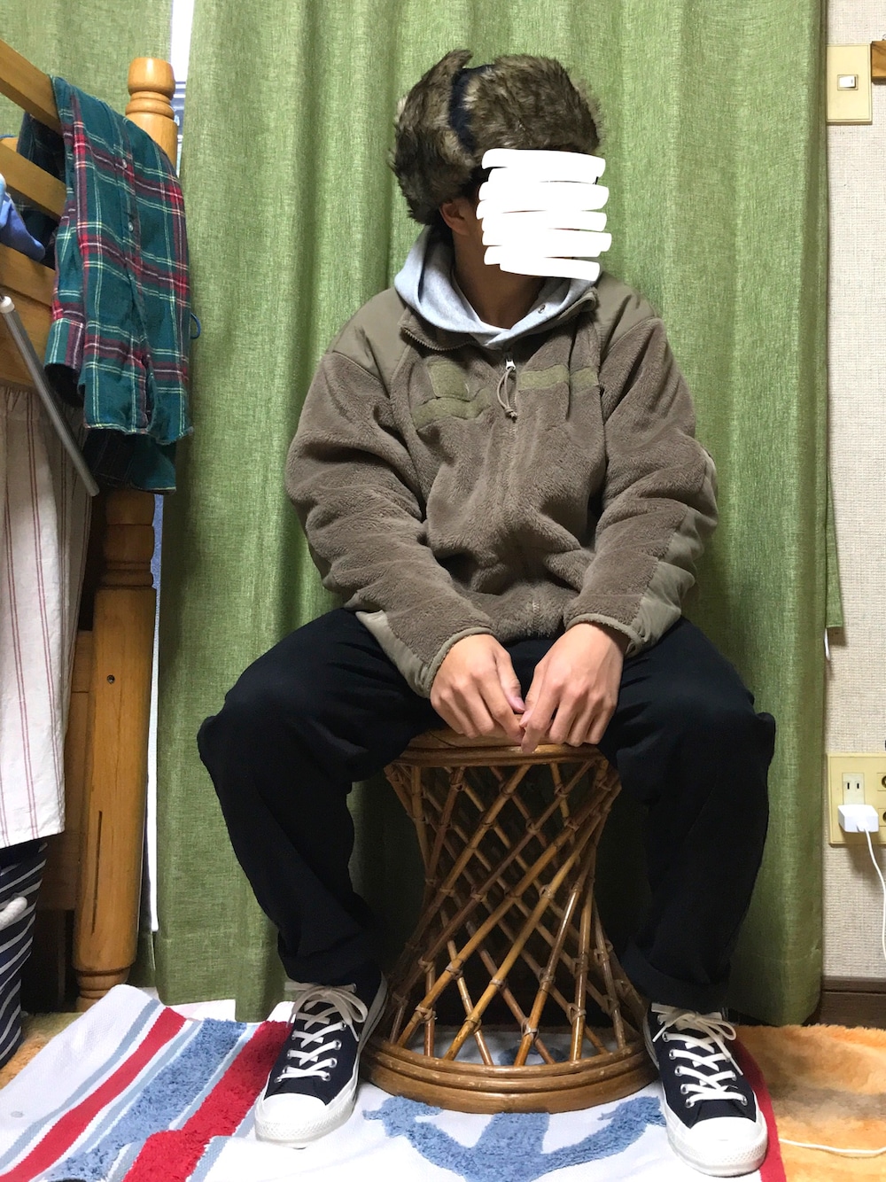 フリースで楽チンコーデ フリースは米軍のデットストック品の第三世代型でぬくぬくもこもこ フライトキャップももこもこぬくぬく