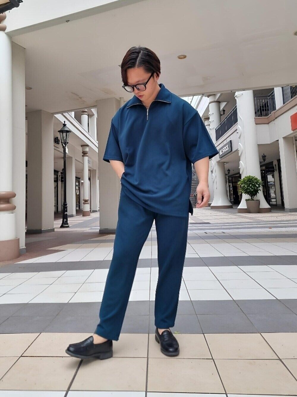 RYO(デザインワークス / アバハウス 三井アウトレットパーク ジャズドリーム長島店(MEN'S))のセットアップ「【上下2点セット / AH ABAHOUSE】ジョーゼット ハーフジップT + イージースラックス」を使ったコーディネート