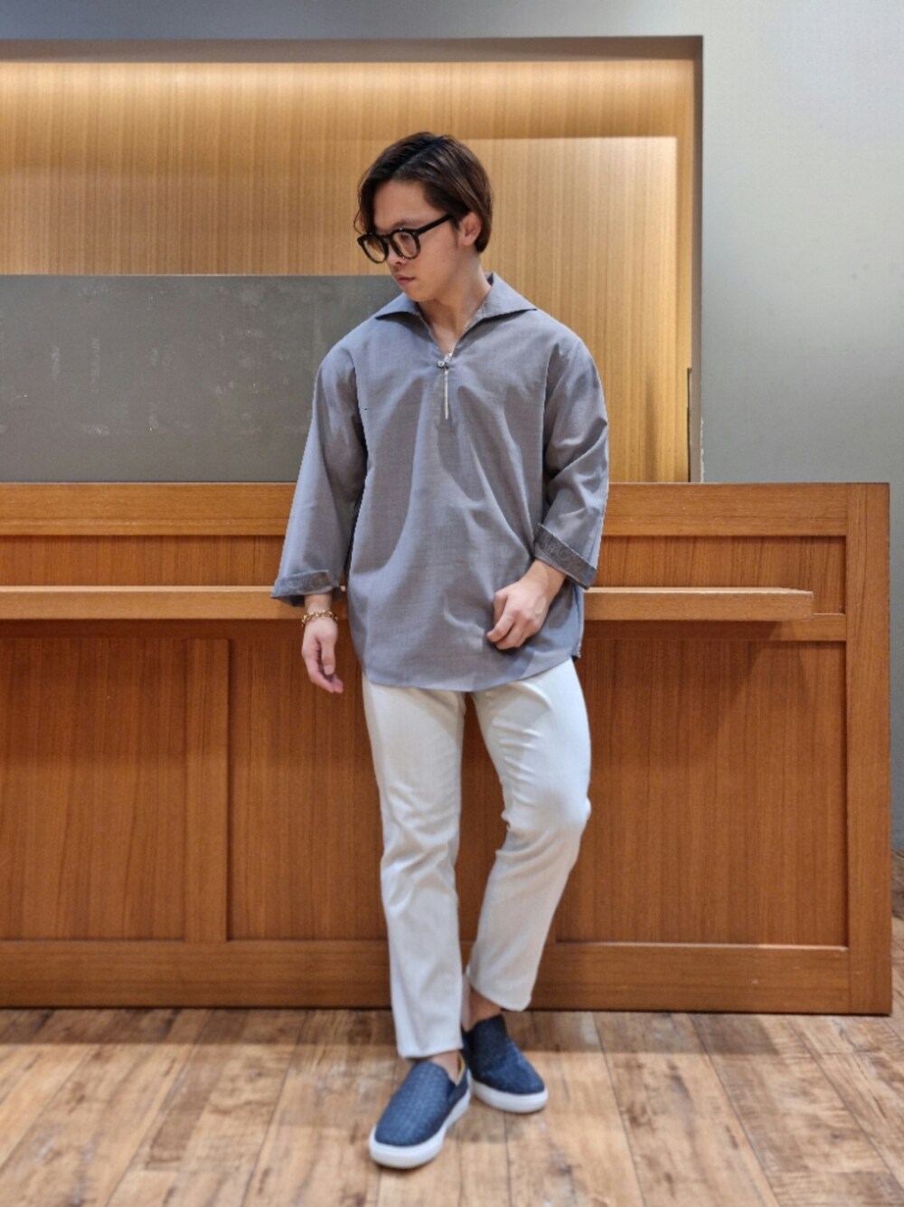 RYO(デザインワークス / アバハウス 三井アウトレットパーク ジャズドリーム長島店(MEN'S))のシャツ/ブラウス「【リネンタッチ】7分袖 カプリシャツ / スキッパーシャツ」を使ったコーディネート