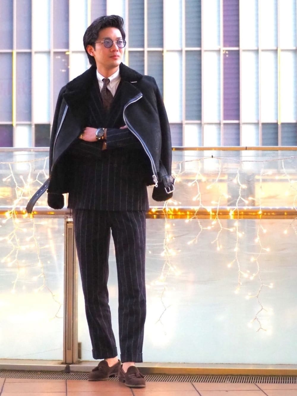 スーツにムートンライダースを羽織ったラグジュアリースタイル。 一生モノのライダースブランドなのでオススメです。 いーね、お気に入り、コメント、フォローお待ちしております😁