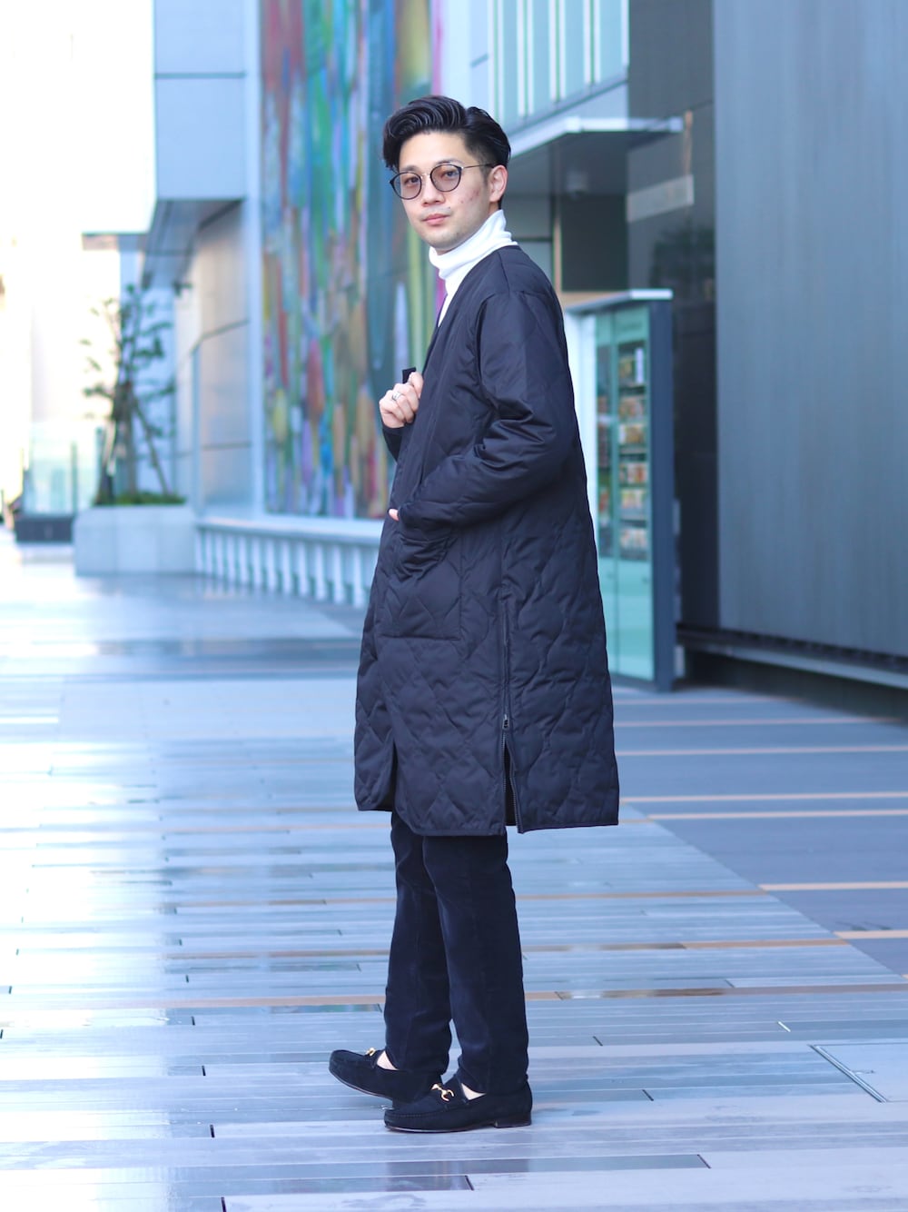 シンプルなモノトーンスタイル。 Vネックのダウンは個人的に新鮮な雰囲気です!!