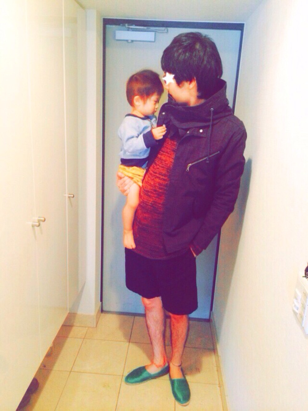 今から買い出しへ。 撮影はいつもどおりかみさんへお願いw ザ忍者スタイル。 丈の短い暗色アウターに 丈の長い暖色ニットを あわせて秋感とバランスを出してみました。 はずしに この夏大活躍のセンスのブラックパンツと蛍光色のエスパドを装備。 ナルトに出てくるサスケくんが 目標ですね。