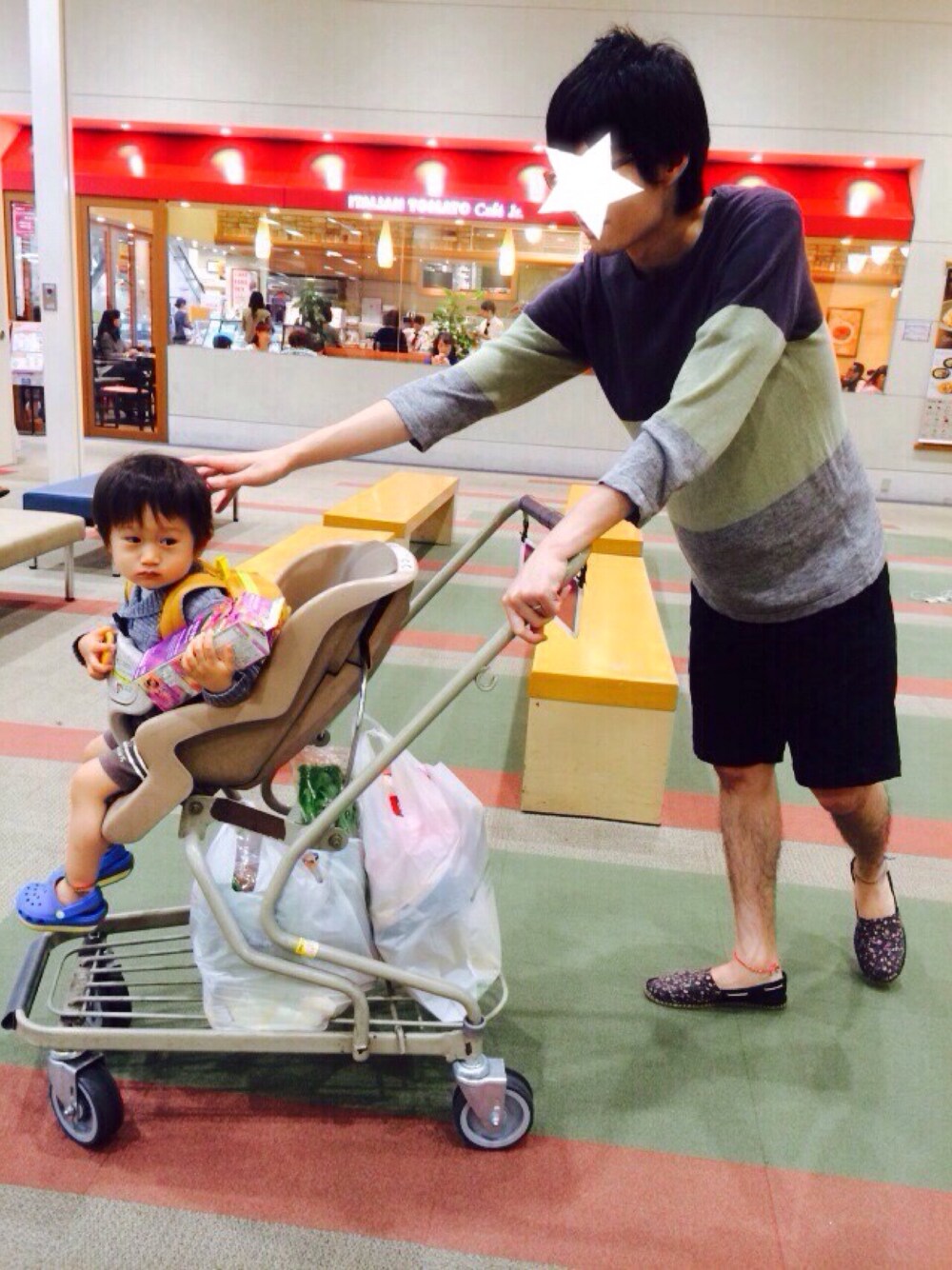 今夜は鍋になりました‼︎ ブリしゃぶ。 先ほど、食品売り場で ブリの切り身 水菜 大根 ネギ を購入しました。 帰ってから仕込みをせねばw 息子は店員のおばさんにシールを 貼ってもらい大事に両腕で ジュースを抱えていますw さて、 二階本屋で来年の年賀状雛形でも品定めし、帰ろ… しかしこの格好らくちん‼️