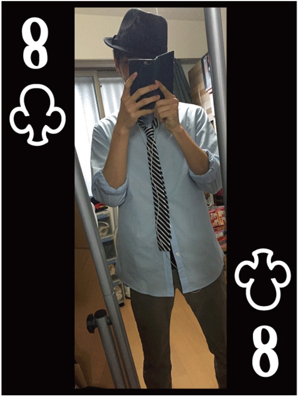 【♣️8】 爽やかを意識し、水色のシャツにカーキ系のパンツを組み合わせ。🈂️ 最近していなかったネクタイはゼブラ柄をチョイス。🐄 最後に黒ハットを被せて完成!🐦