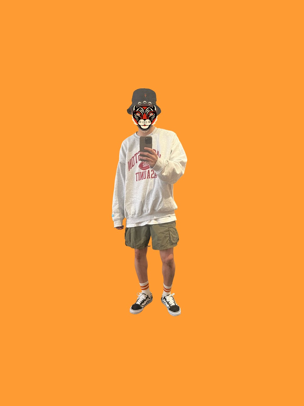 RYOのスウェット「[SCREEN STARS/スクリーンスターズ] ダメージ加工 カレッジロゴプリントクルーネックスウェット」を使ったコーディネート