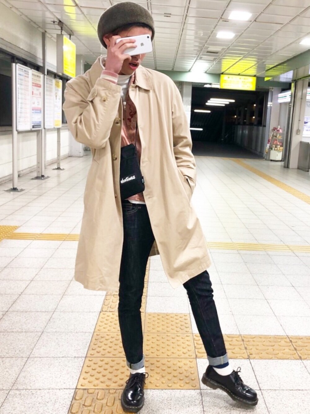 ステンカラーコート×スカジャン tops: UNIQLO coat: international gallery beams pants: Levi‘s shoes: dr.martens bag: wildthings ステンカラーとスカジャンを組み合わせてみました😊 ご観覧ありがとうございました🙇♂️