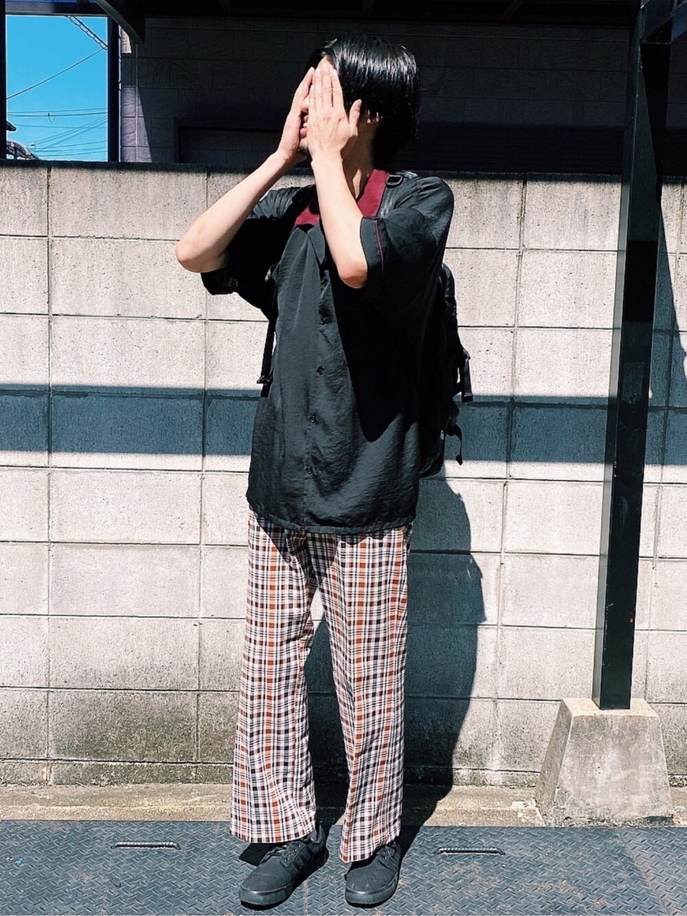 2020.9.15 . 今日あつーってなった瞬間の写真 トップスの襟赤なのでパンツも赤系で合わせてみました。 御観覧ありがとうございました😊