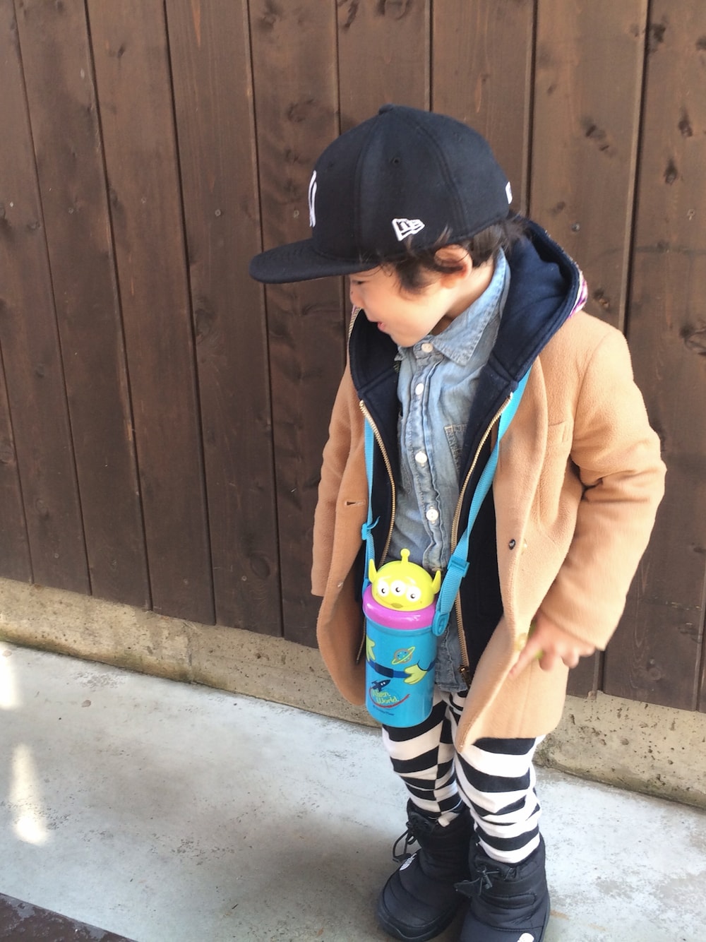 いつかのコーデです リトルグリーンメンの水筒🚀🚀 幼稚園でも休みでも中身はお茶でうがいします‼︎でもよく熱出すぅ😷