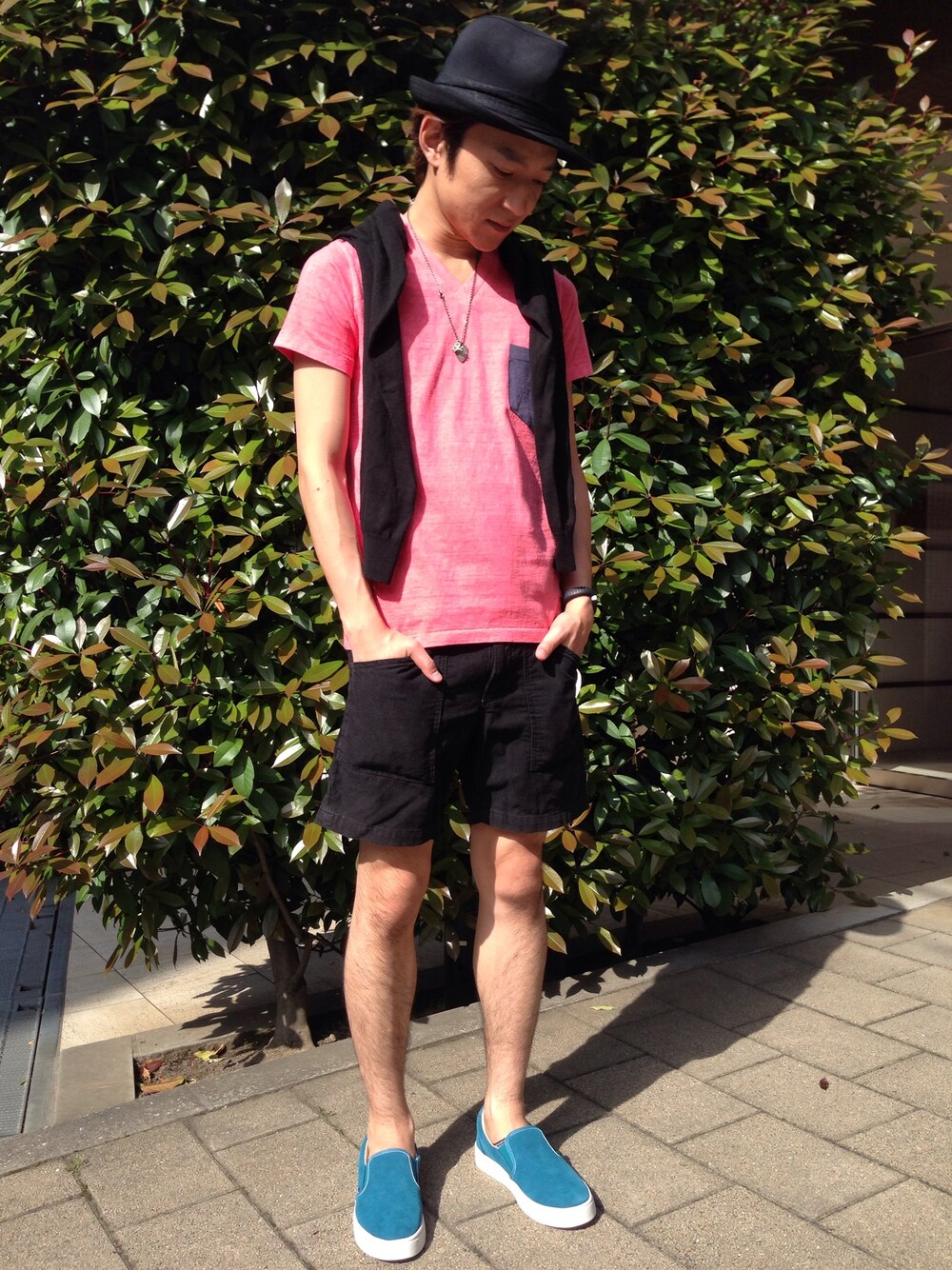 レッドのTシャツは何気に初挑戦。そして今売れまくってて手に入らないTMTのスリッポンを本店で偶然ゲットできたので、夏っぽくコーディネイトしてみました。