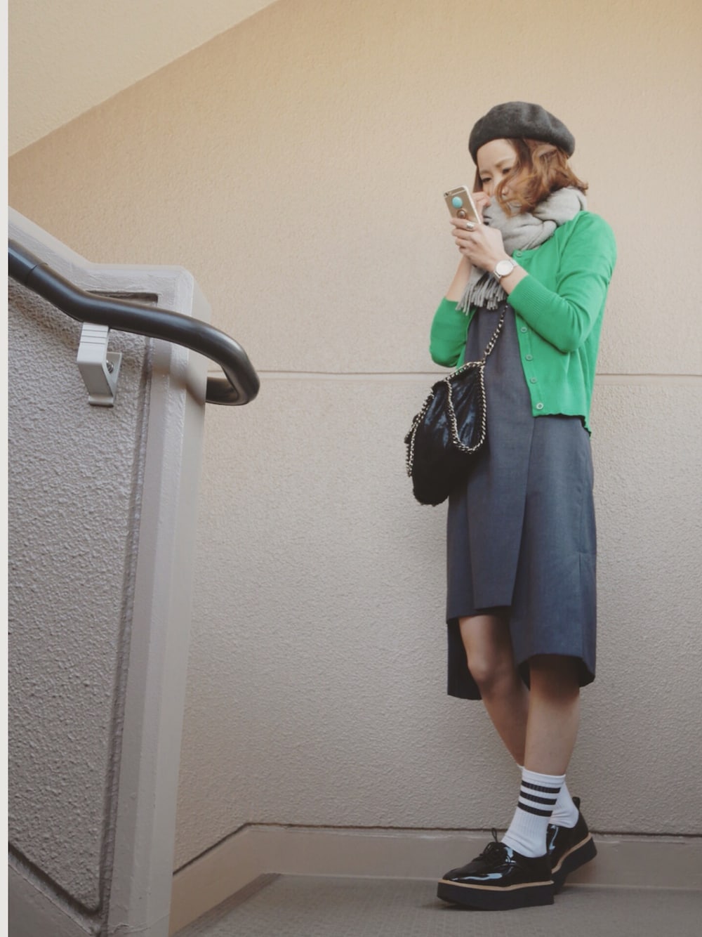 ご訪問ありがとうございます🙏️💕 エンフォルドのワンピースには原色を合わせるのが好きです💓 この日はグレー×グリーンにしました💚✨ WEARは気ままな更新ですが、インスタとブログはよく更新しています☺️🌷✨ 是非遊びにいらして下さい❤️❤️