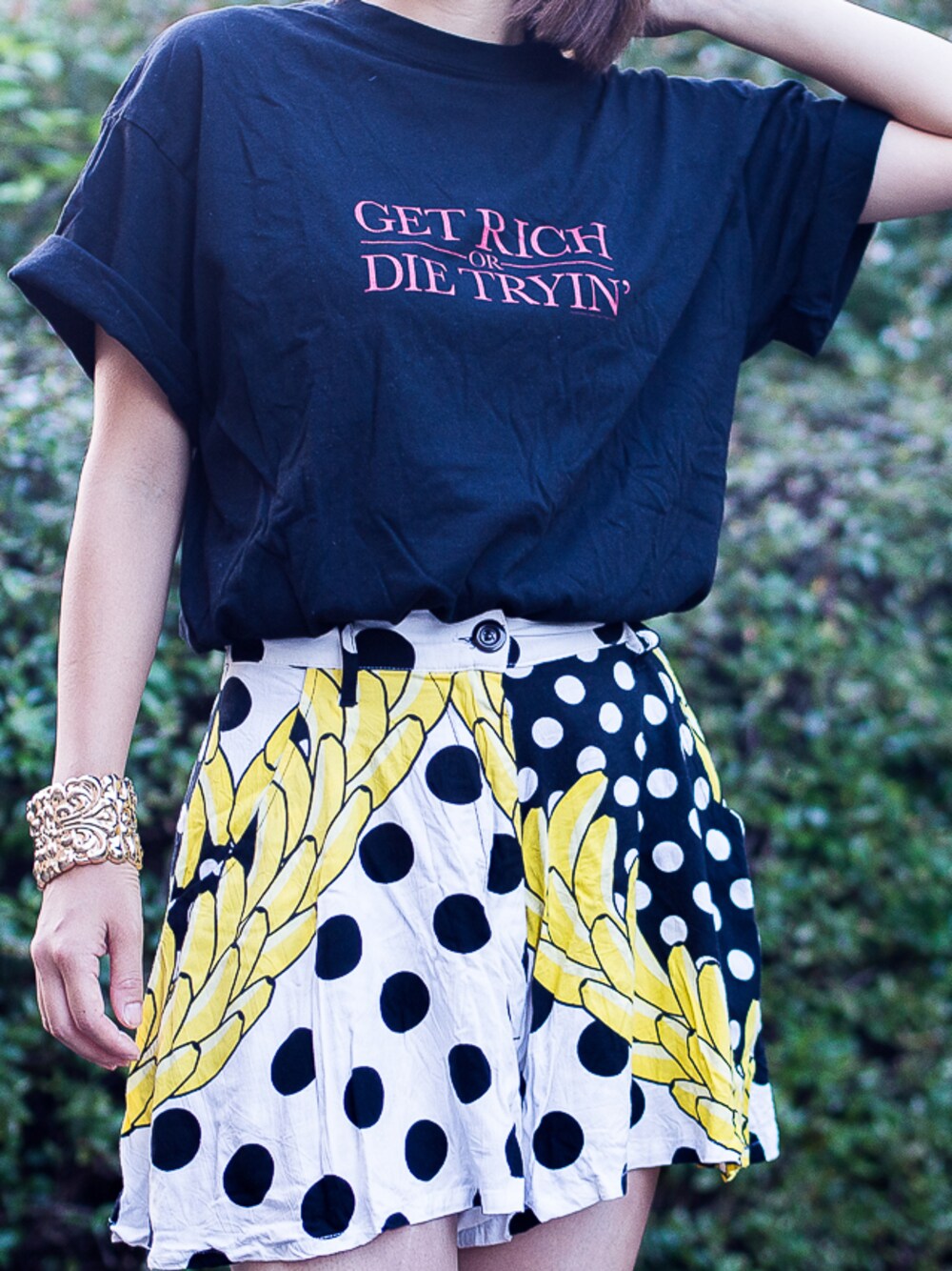 T-shirt : 50CENT Pants : FAIRGROUND Bracelet : ANNA DELLO RUSSO for H&M