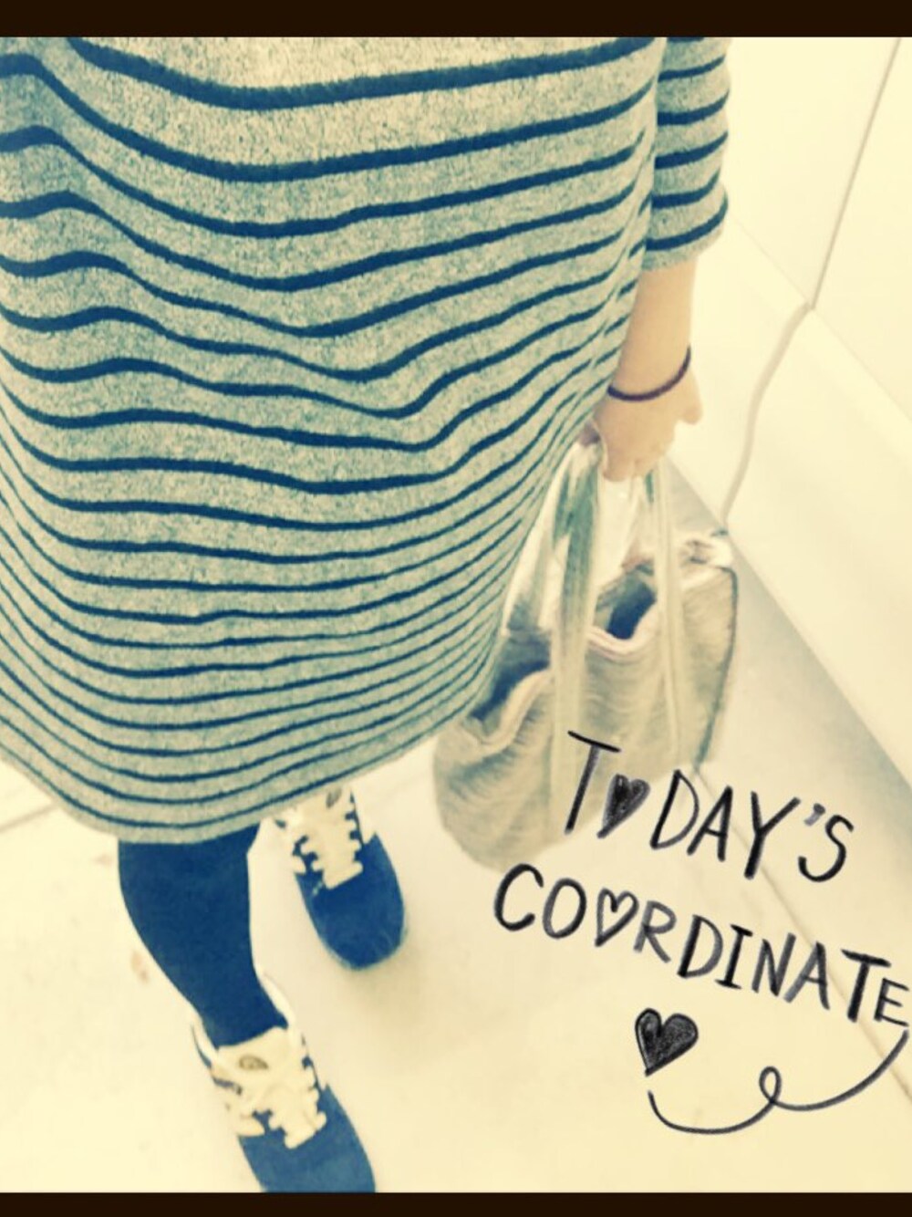 ワンピ→ronhaman カバン→シエスタポー タイツ→靴下屋 くつ→ニューバランス ニット帽→ビームス 映ってないけど白のニット帽被ってました(笑) 娘の保育園のお迎えでしかお外に出ませんでした!なのでラフな格好です◡̈♥︎