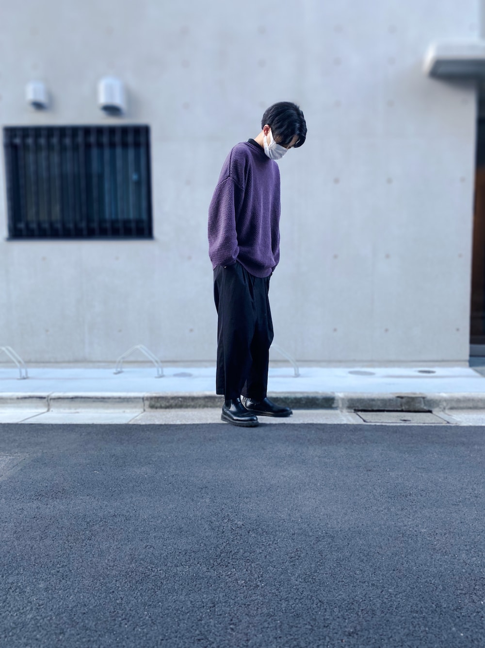 2wayのニットカーディガンです 今回は後ろ向きで着てみました パープルの色が秋っぽくて好きです
