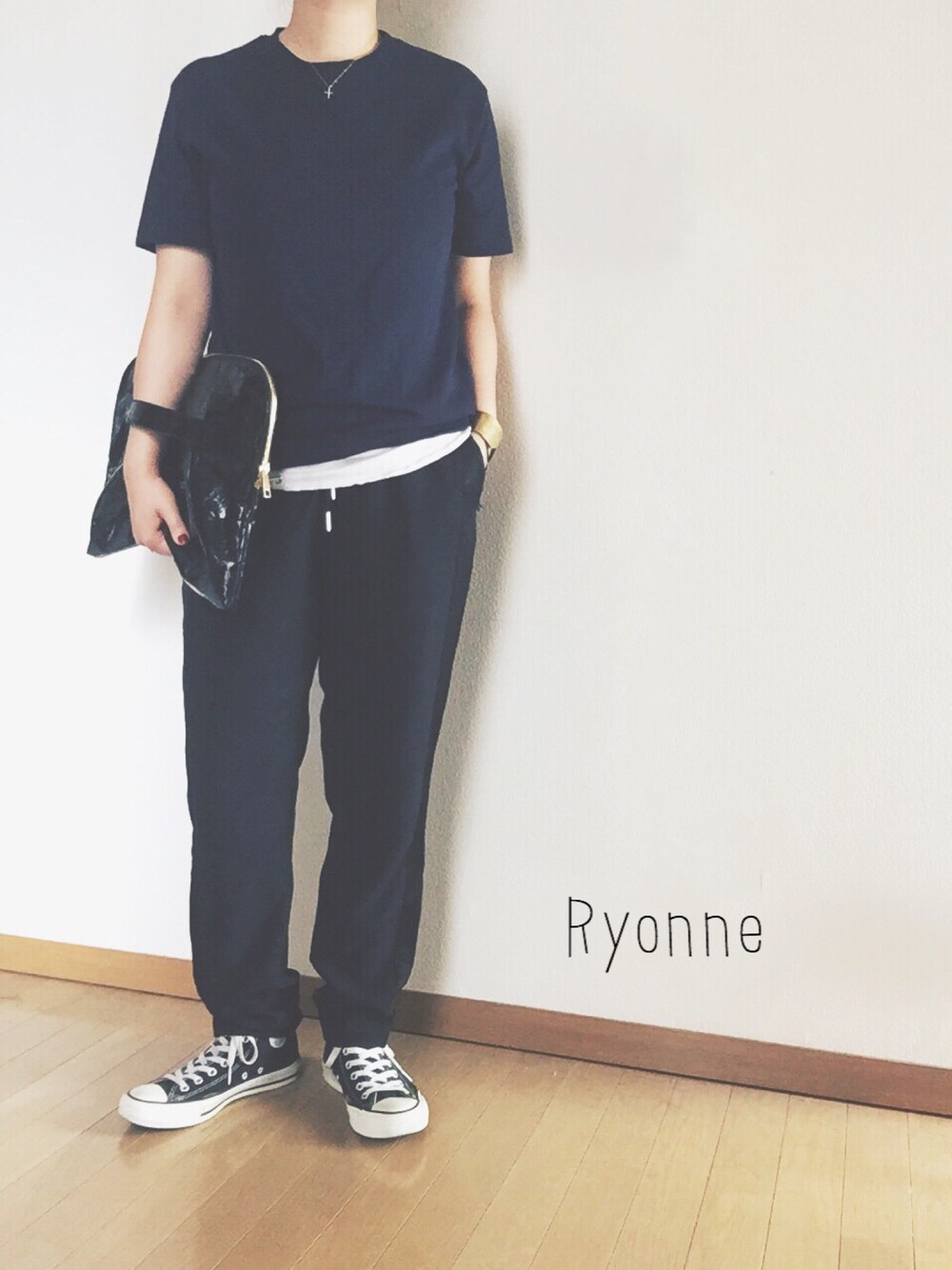 ネイビー×ブラック メンズライクな気分です。 たまにはTシャツ出してみた。 間に白が入るとなんか◎