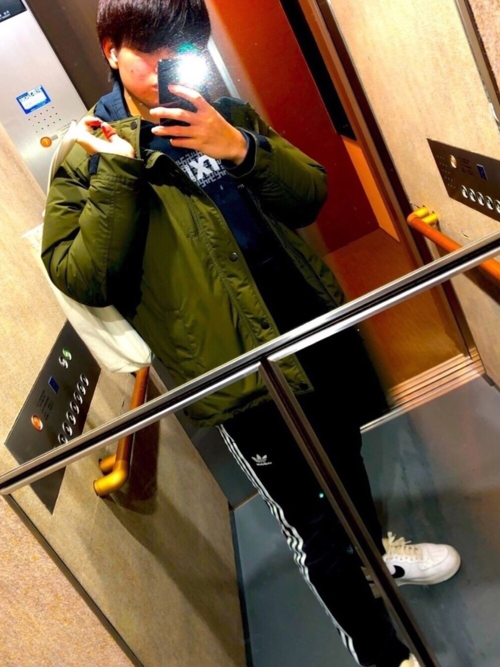 夜はめっちゃ冷えるからダウンジャケットで寒さ対策🥶 outer : アーバンリサーチ(ダウンジャケット) tops : パーカー pants : adidas originals (ラインパンツ) shoes : Nike Air force 1(スニーカー)