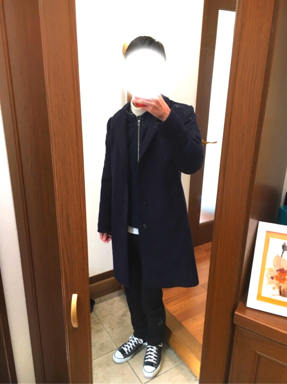 いつもいいねやフォローありがとうございます✨ 今日は...... 🌟アウターonアウターコーデ🌟 デニムのMA_1の上にネイビーのチェスターコートを着ました! MA_1の下はモックネックのニットで首と腰でレイヤードができて白が足せました👍 アウターonアウター最初は違和感があったけど最近は見慣れてとても良いなぁと思います🌱 <サイズ> コート L MA_1 L ニット M パンツ 28 スニーカー 27.5 よければいいね、フォローお願いします🙏🙏