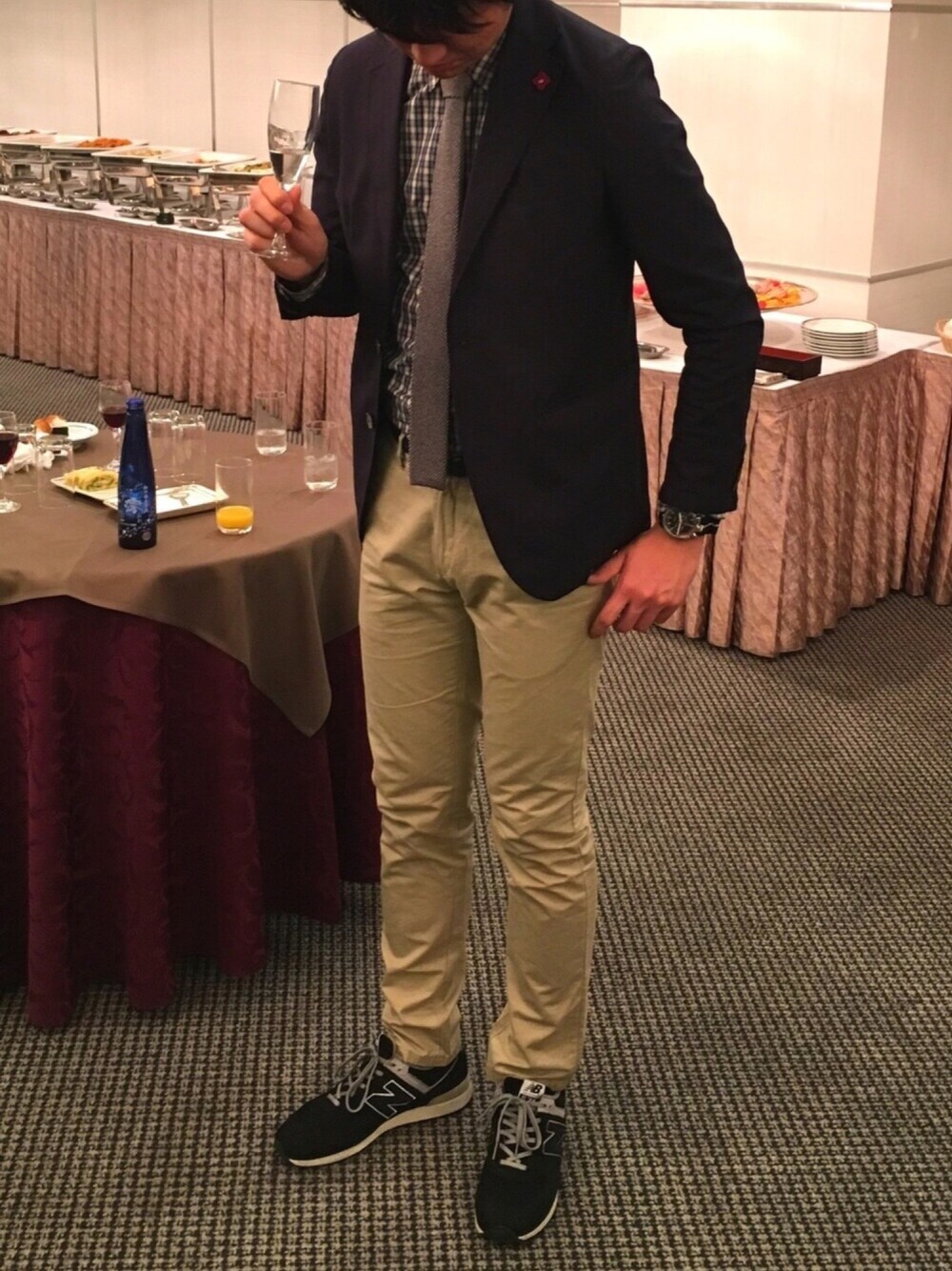 大学の卒業記念パーティーでした。 普通のジャケパンスタイルです ドレスコードは特になかったので 自由にやりました 足元がスニーカーなのは ちゃんとした革靴をもってないからです 明日からは、部活の同期で卒業旅行。 伊豆に行ってきます